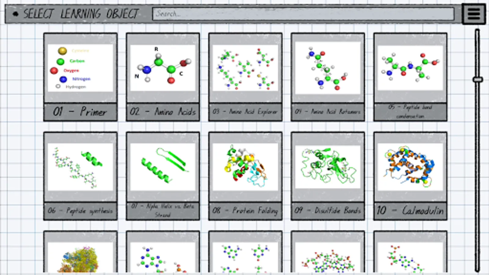 Explore biology like never before with the power of augmented reality. Get up-close and personal with biological molecules; from simple building blocks like amino acids and nucleotides to molecular machines like ribosomes and kinases. This fully interactive study aid is enhanced with audio clips detailing each molecular concept.