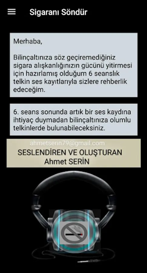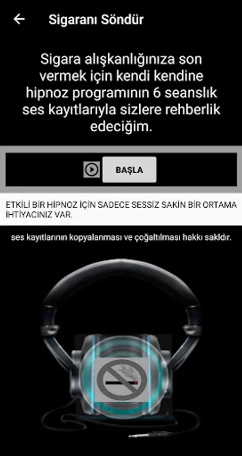 Stop Smoking with Hypnosis application will provide you with the necessary equipment in 6 sessions so that you can suggest your subconscious.