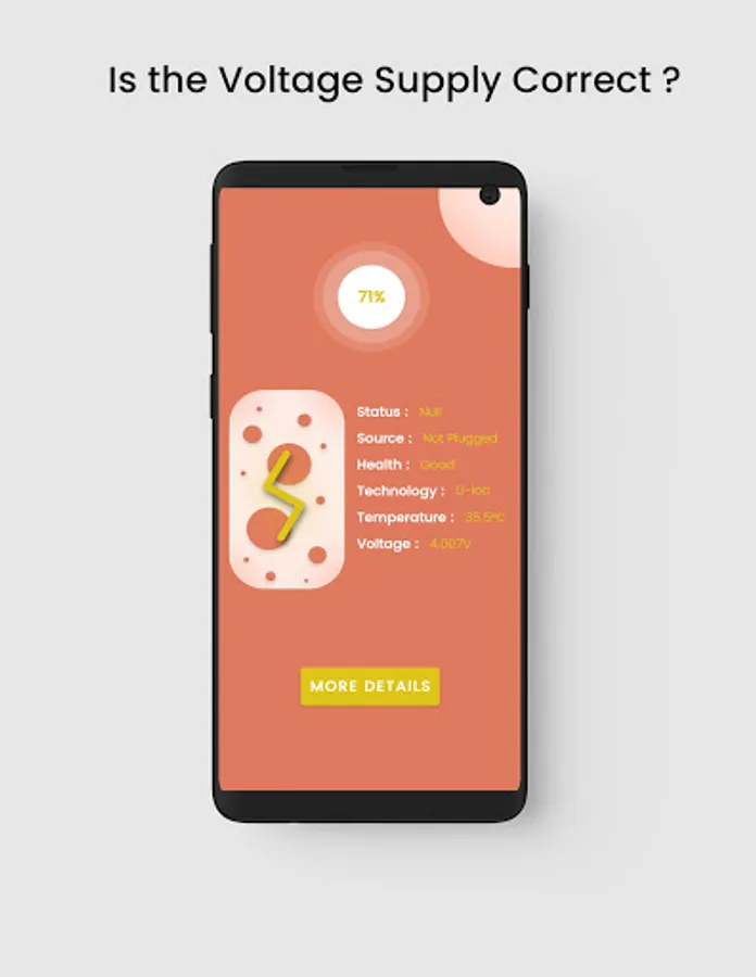 This app has the ability to check and monitor your phone's Voltage and Temperature. In addition, has the Coolest UI developed for best user experience.