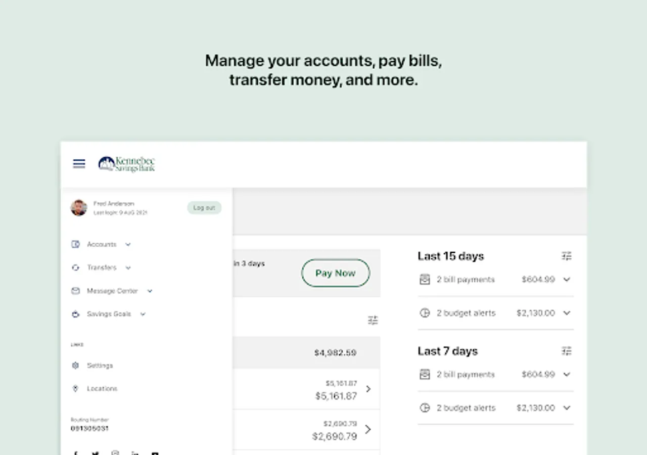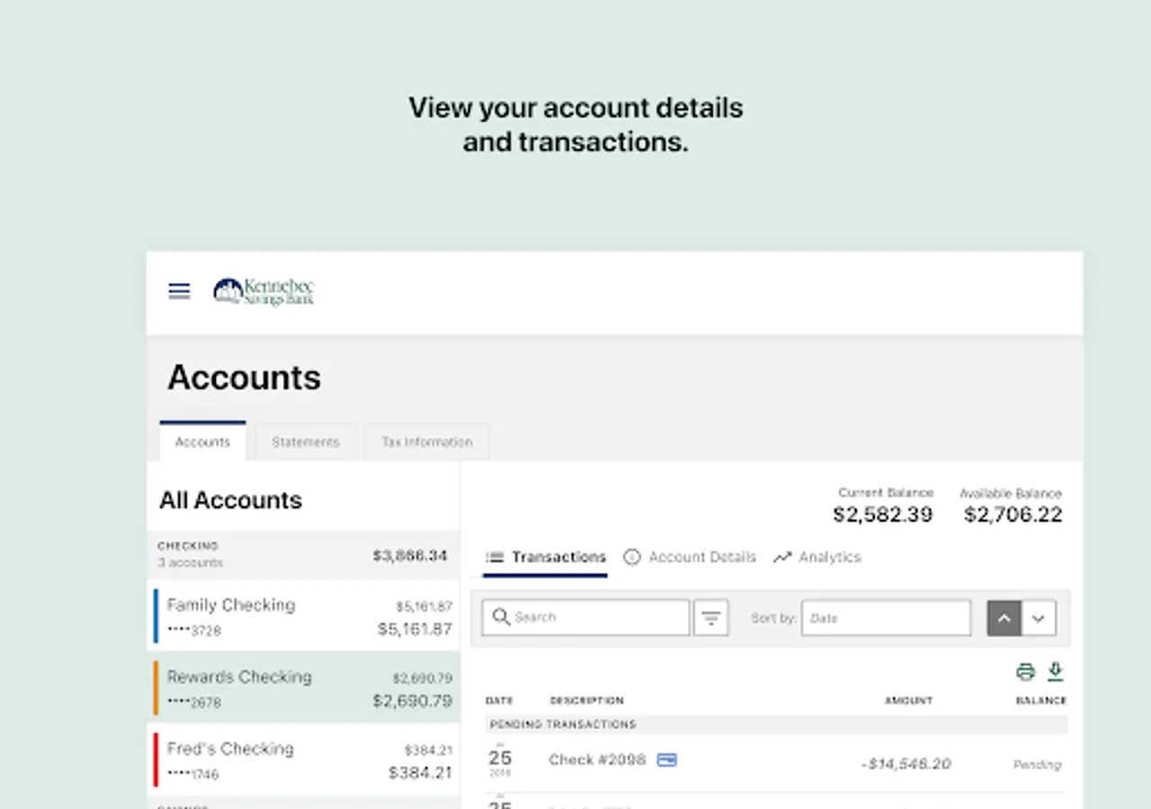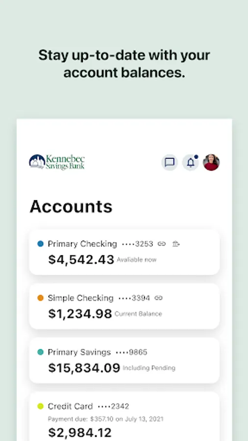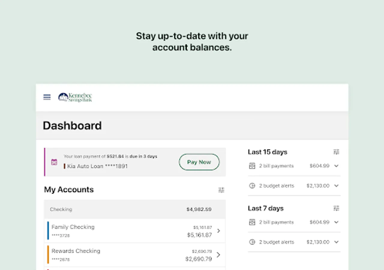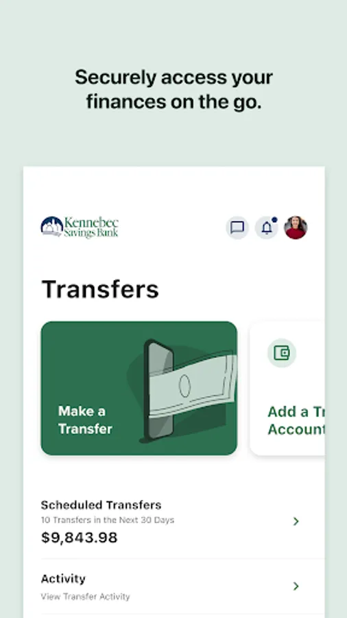 Kennebec Savings Bank's mobile banking app is the ultimate on-demand service for managing your accounts. Instantly check your balance, view account history, transfer funds, pay bills, deposit checks, and more! Member FDIC.