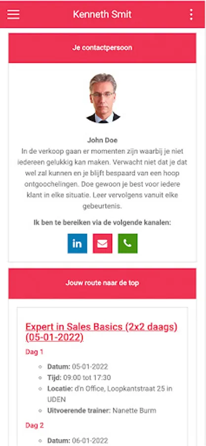Are you a participant at Kenneth Smit? Then simply stay in touch with your trainer. Use this handy app to have your route to the top in your pocket. Cards will also be unlocked for you after following our training courses.