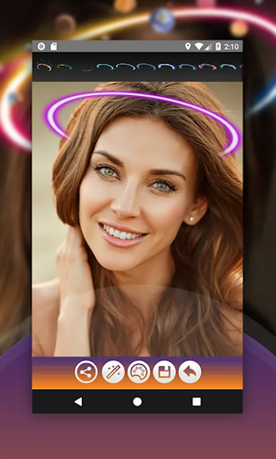 Light Crown Photo Editor is an obvious choice to Girls and Boys to get an enormous Makeover to your appearance in photo, with an amazing colorful circle around your head you will hook the attention either of your friends or your followers