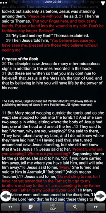 - Words of Christ in red for the KJV, WEB, NIV, and NASB translations