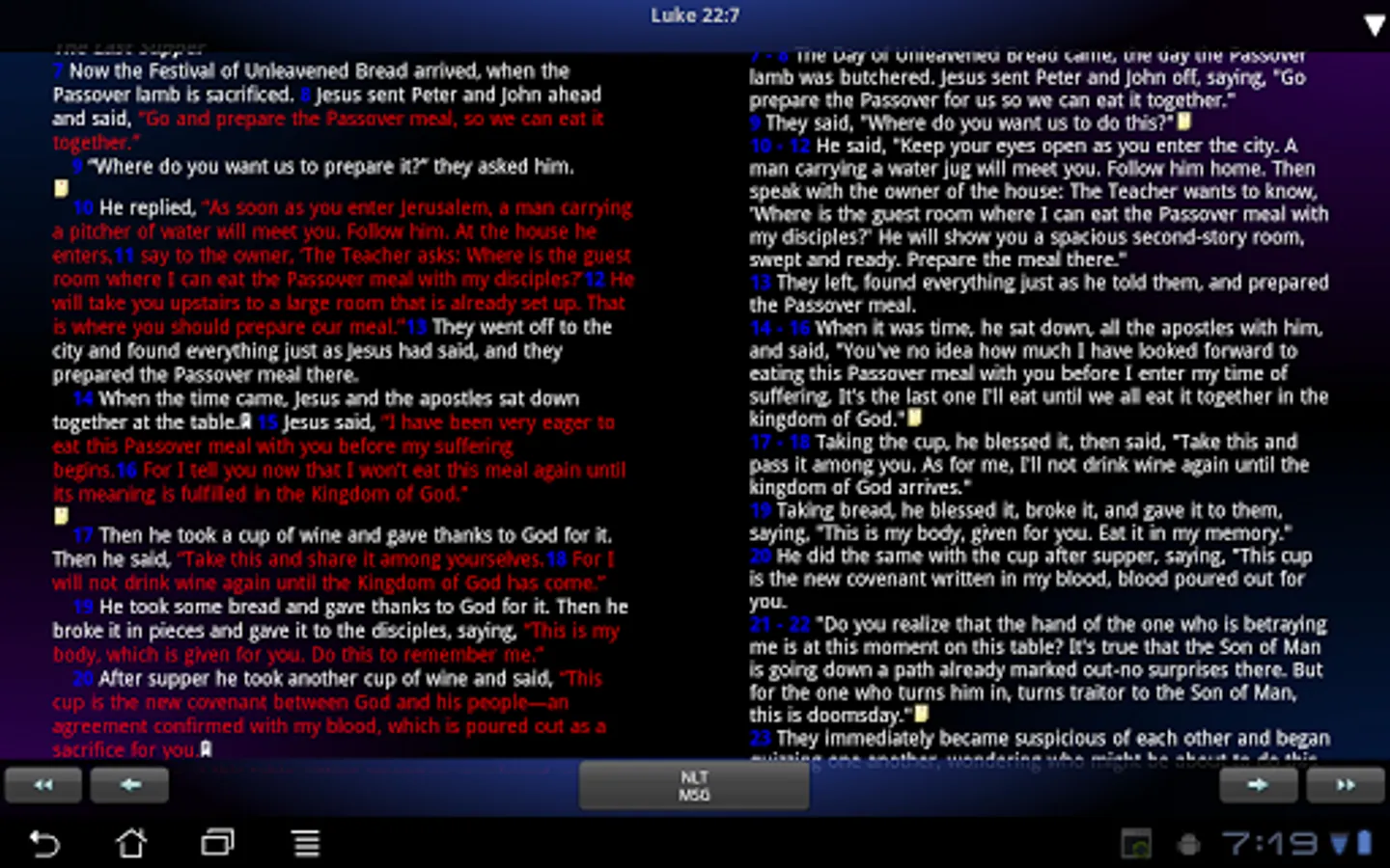 - Landscape view to read Bible in widescreen, or to view split screen translation side-by-side