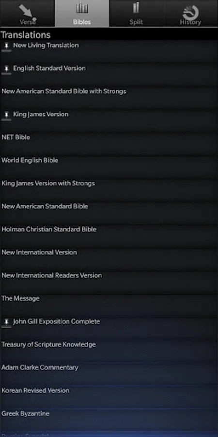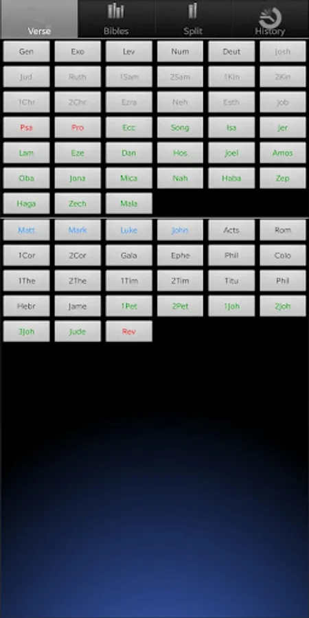 - Verse history that keeps track of all navigated verses, and can easily navigate between them using buttons