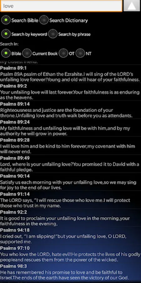 - Pressing the top bar now allows you to jump to a verse selection screen, pressing arrow shows verse/chapter shortcut bars