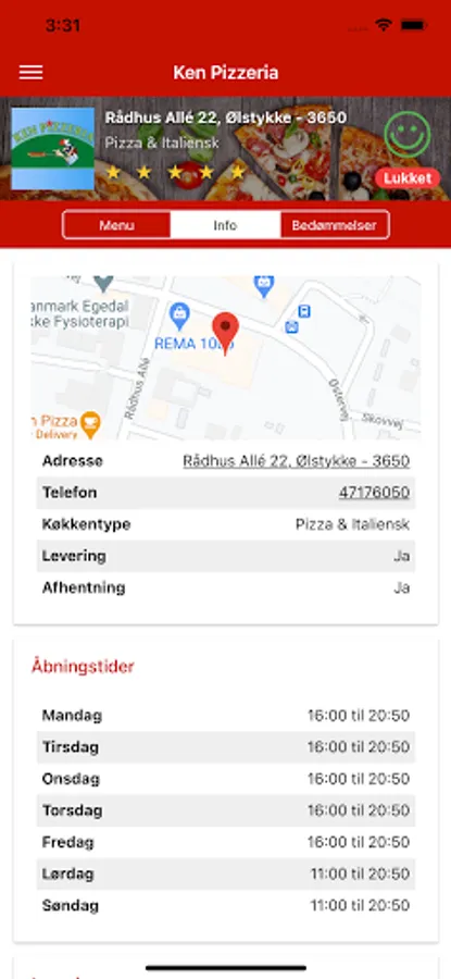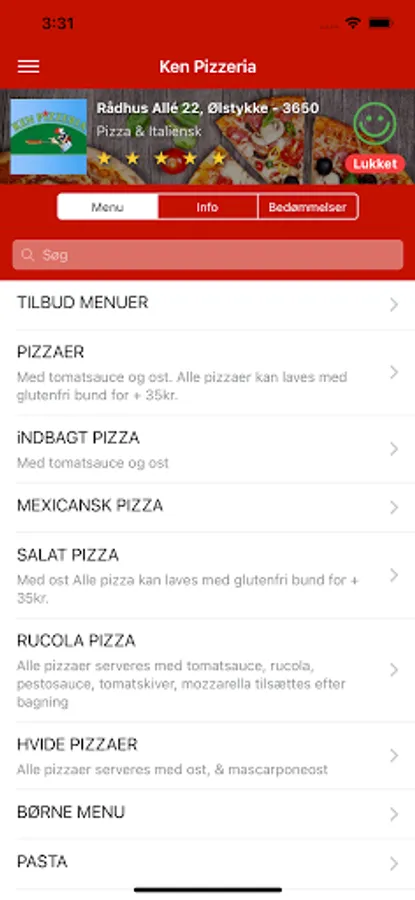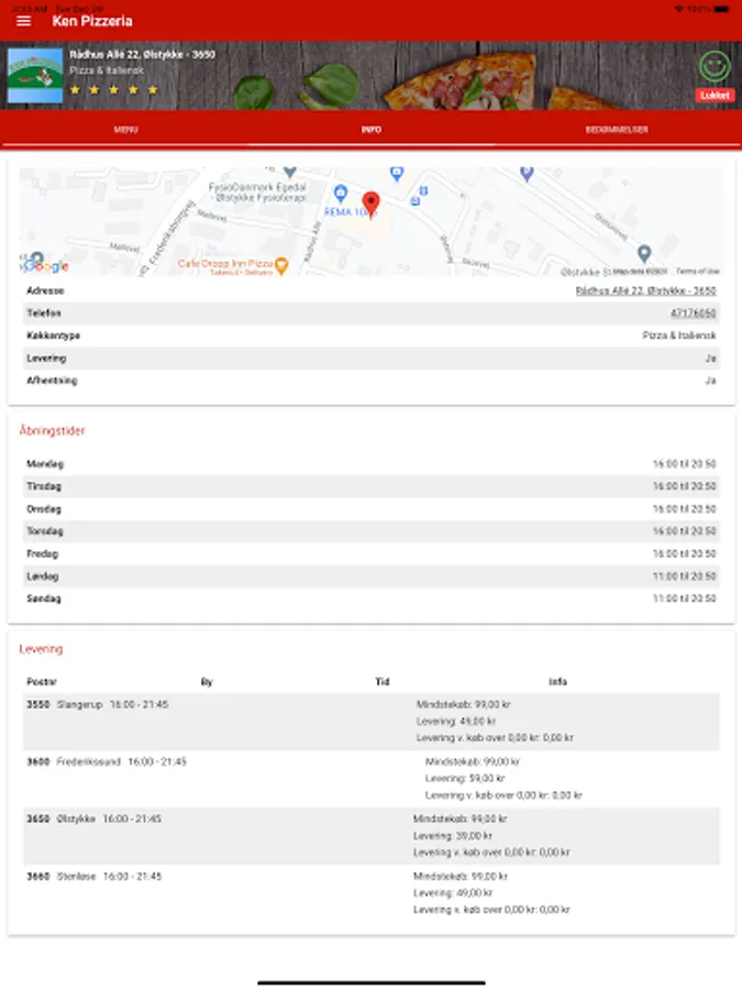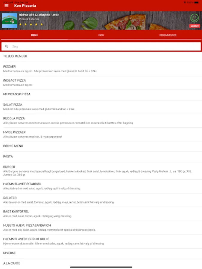 Bestil din mad online fra din favorit restaurant med Ken Pizzeria gratis app.