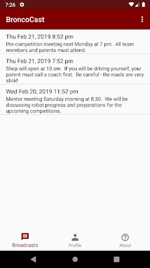 This app is for students, parents, and mentors of FIRST Robotics FRC Team 1987 The Broncobots at Lee's Summit North High School. With this app, BroncoCasts will be sent to your device as app notifications. You can easily view past BroncoCasts.