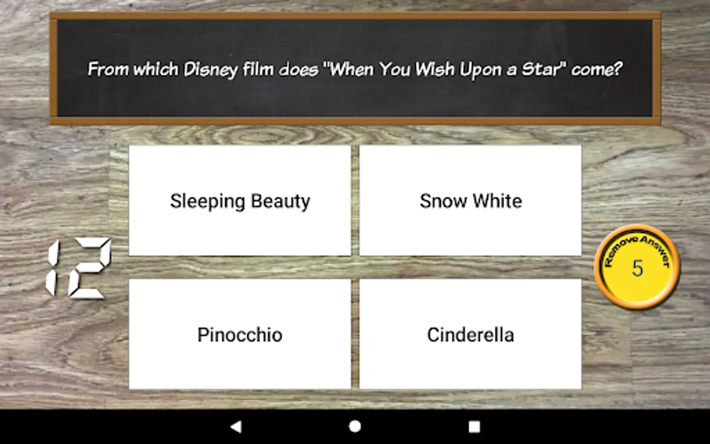 Stuck answering a question? Use your Remove Answer tokens to remove an incorrect answer and increase your chances of success. Remove Answer tokens are awarded for completing games, or can be purchased from the in-app Quiz Shop.