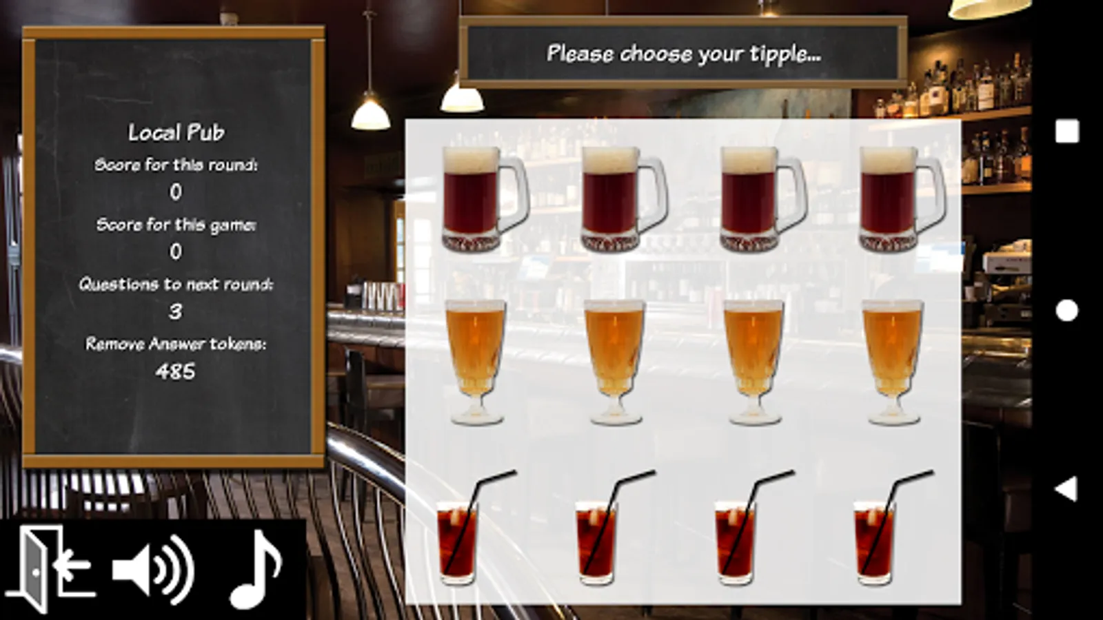As featured in "Apps Magazine" (issue 32), take part in a Pub Crawl cruising from bar to bar answering multiple choice questions with increasing difficulty. Can you make it to the last bar?