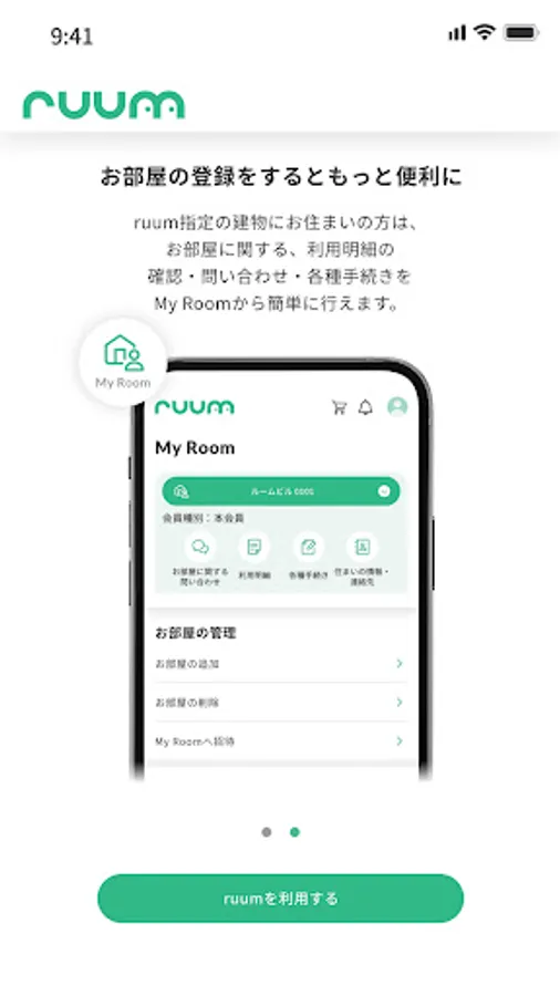 We also deliver great coupons and entertainment information. In addition, if you live in a building designated by ruum, you can complete procedures such as rent usage details, inquiries, and contract renewals.