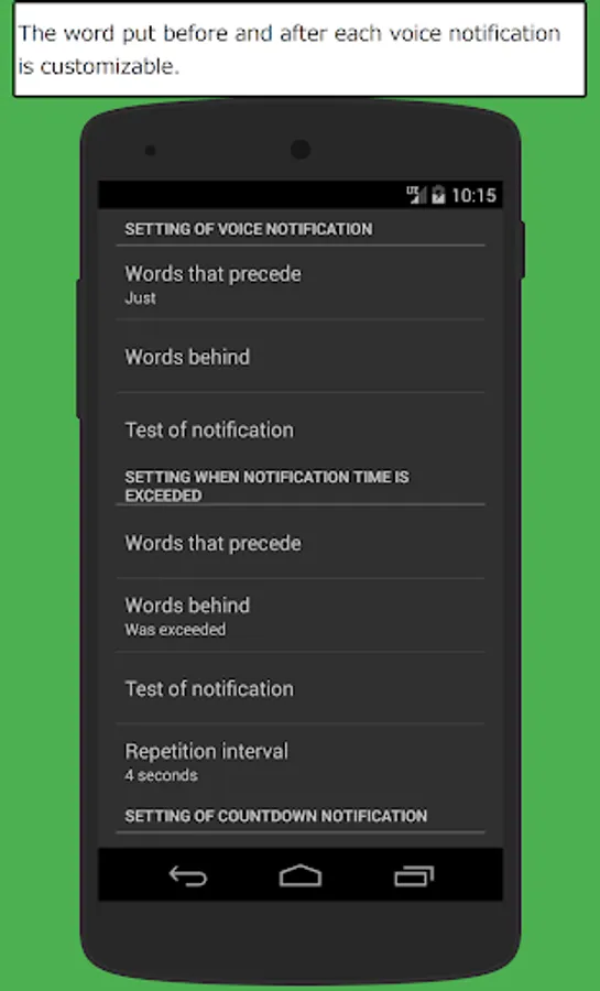 ・Number of repetitions when the voice notification time has exceeded.(one-Infinity)