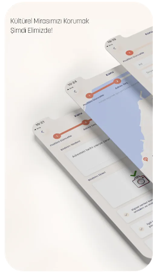 After downloading the KORU application to our phones, people can add the location, status and photo of the structure they see as destroyed. After the preliminary examination regarding the notification is made, it is forwarded to the relevant institutions. After the negotiations with the relevant institutions authorized for the intervention are continued, the people who made the report are informed.