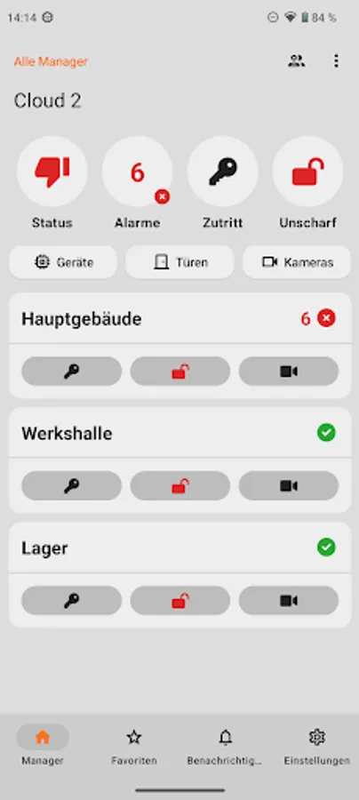 The app reports intrusions, critical environmental parameters such as temperature, humidity and many other parameters. Furthermore, you receive information about fires at an early stage. In addition, it shows who, when and where doors were opened with additional live video images. In addition to alarms, messages and recordings of critical conditions, you can also remotely open doors or block them for people and see who is where via live video. The intrusion detection function can arm or disarm any area or show you open windows and doors.