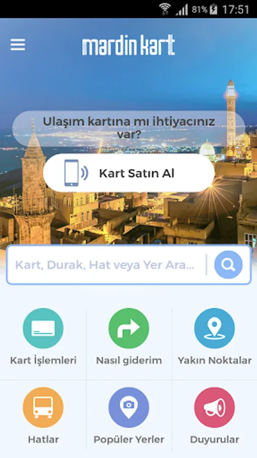 With the Mardin Card application that we offer to provide a better quality service to Mardin city, you can draw your own route in city transportation, track the usage history of your Mardin Card, see the arrival time of the vehicle you expect, track vehicle departure times, and load your balance online. If you want to download from the dealer, you can get the nearest dealer information from the application.