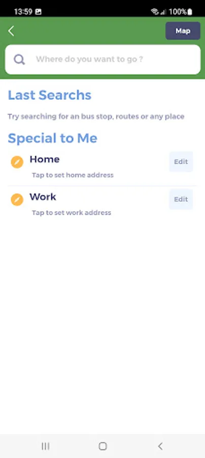 The application will recognize your current location as your home location. If you want to start from another location, you can enter another location as your home location. After entering the destination location, the fastest route will be displayed on the screen with information on stops, travel times and ticket prices. If you do not have a PEOPLES BUS SERVICE card, you can buy a one-time QR code card.