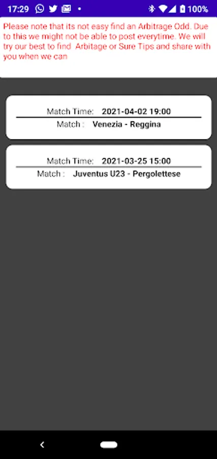 Arbitrage Calculator or Sure Bet also known as Arbing. With this calculator you can check if some bet offers an arbitrage(Sure odds) or not and also you get your bet sizes as outputs to make optimized surebet for maximum gain.