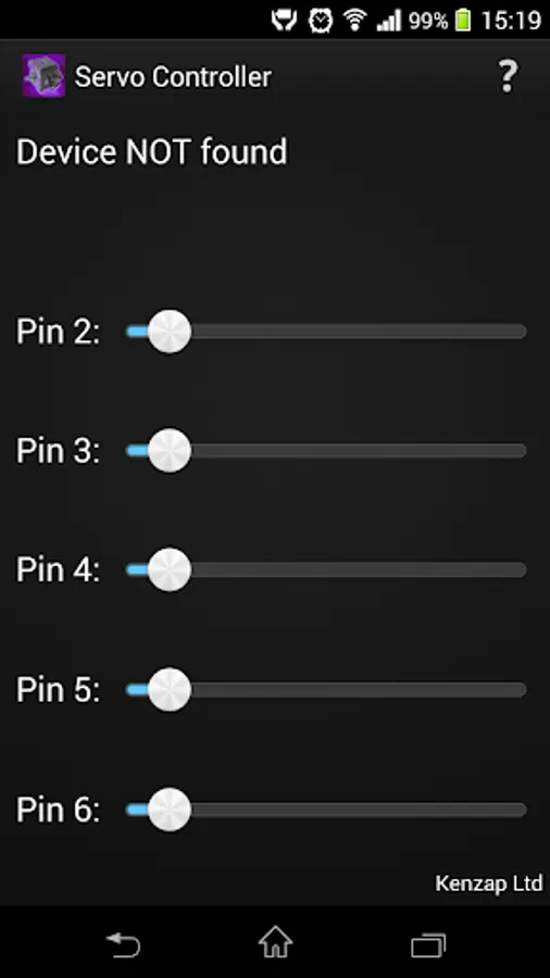 This app connects to Arduino board and controls Servo motors or Electronic Speed Controllers (ESC) connected to it using 5 blue sliders.