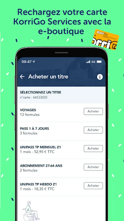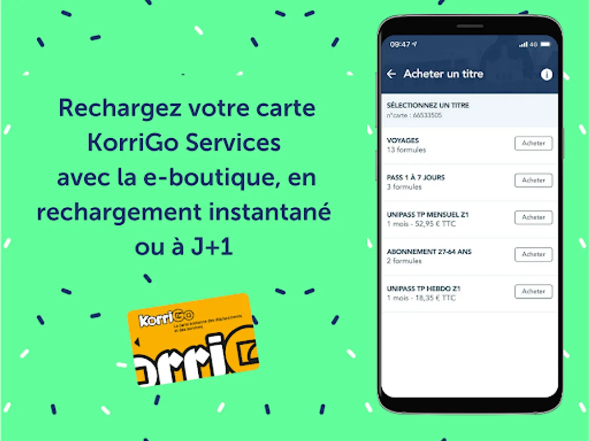 - With instant e-recharge, scan your Korrigo card with your smartphone and recharge it immediately