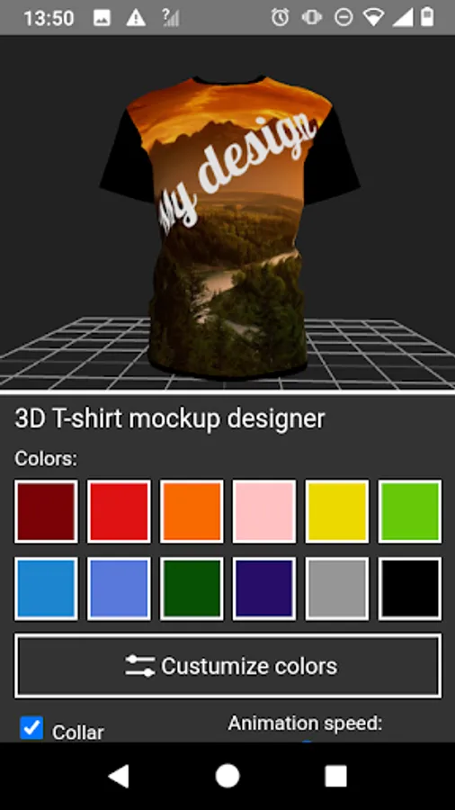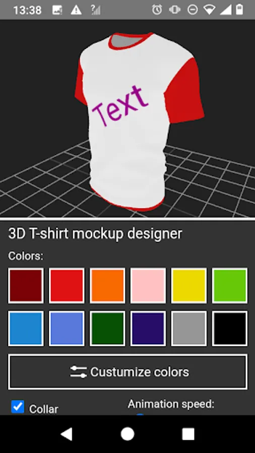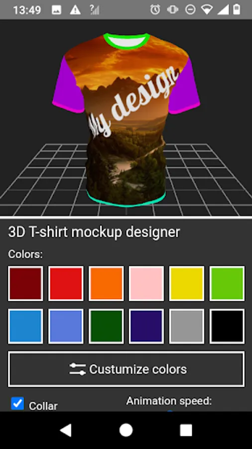 You can create your own custom T-shirt design, rotate the 3D model, download the created PNG mockup, take a snapshot of the 3D scene in PNG format, and also record a video in WEBM format.