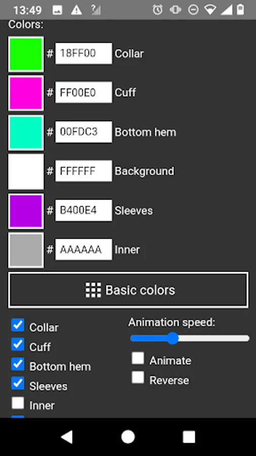 You can also change the color of the collar, sleeves, bottom hem, cuff, inner color, and print area color.