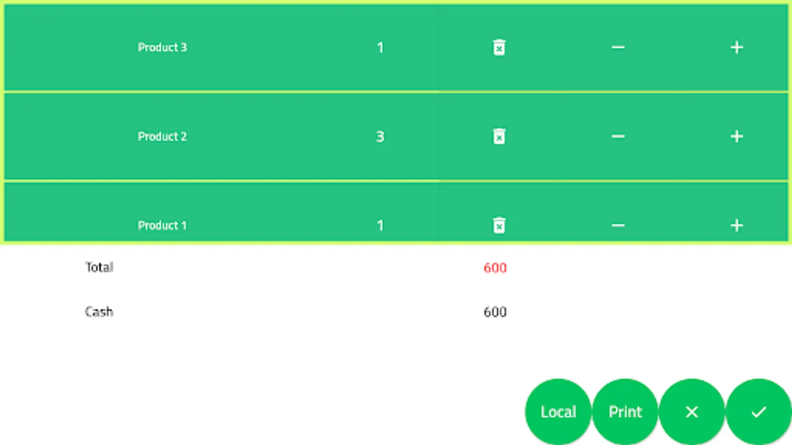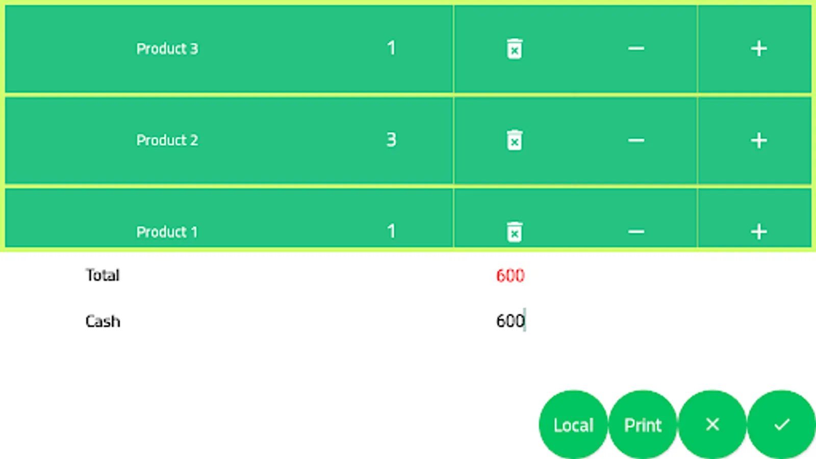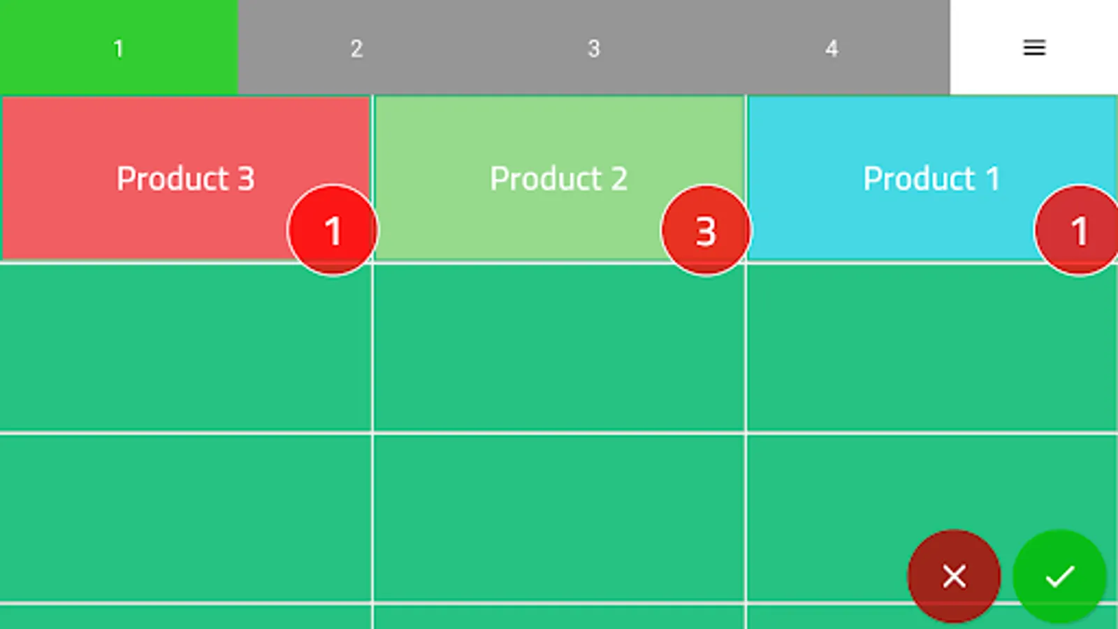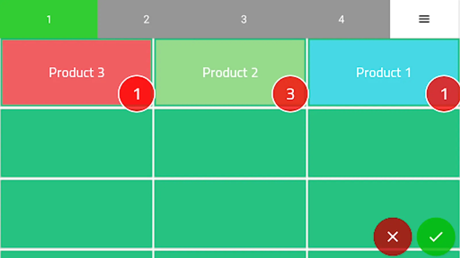 To reduce the quantity, click on the red circle that appears when selecting a product