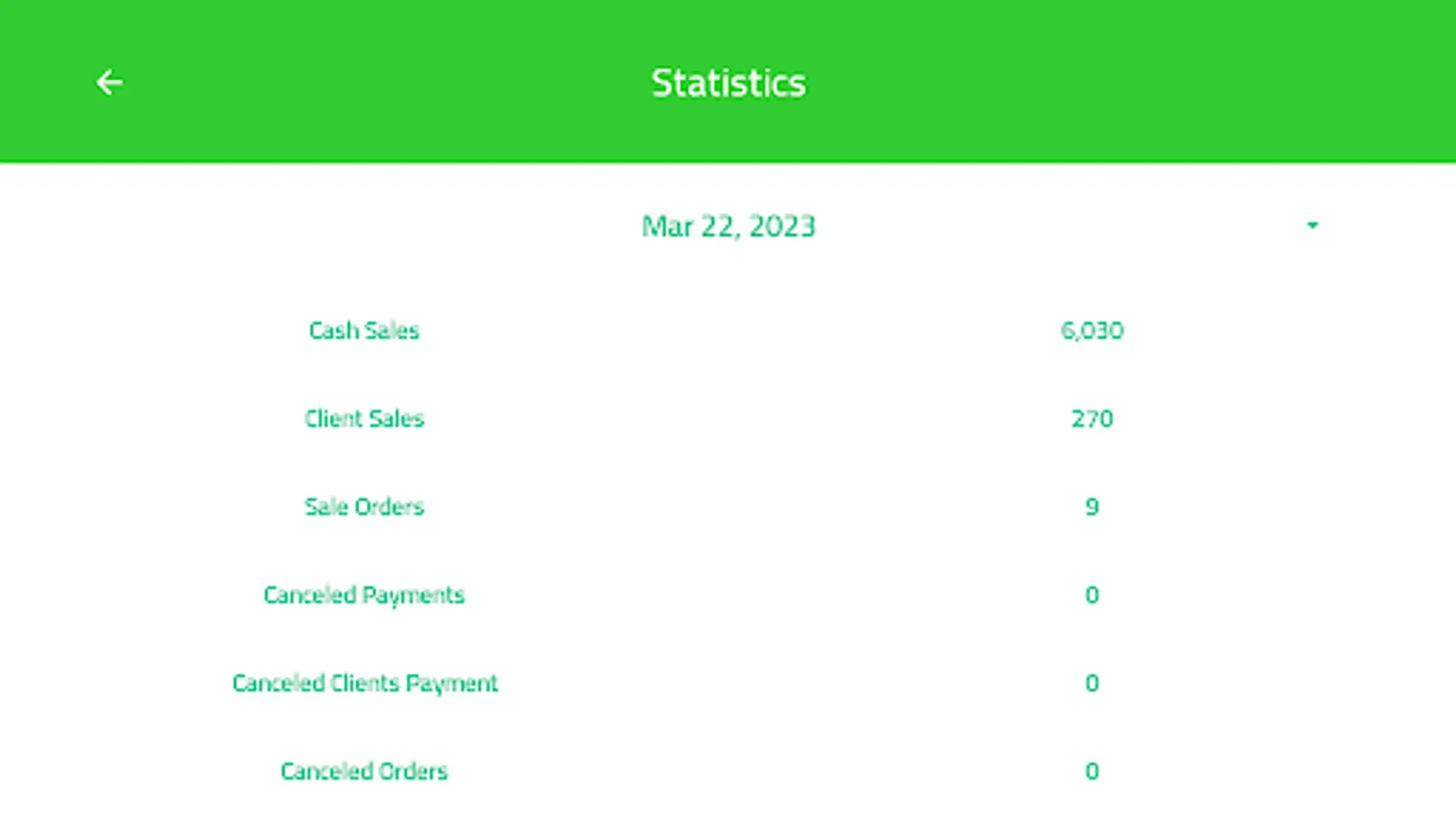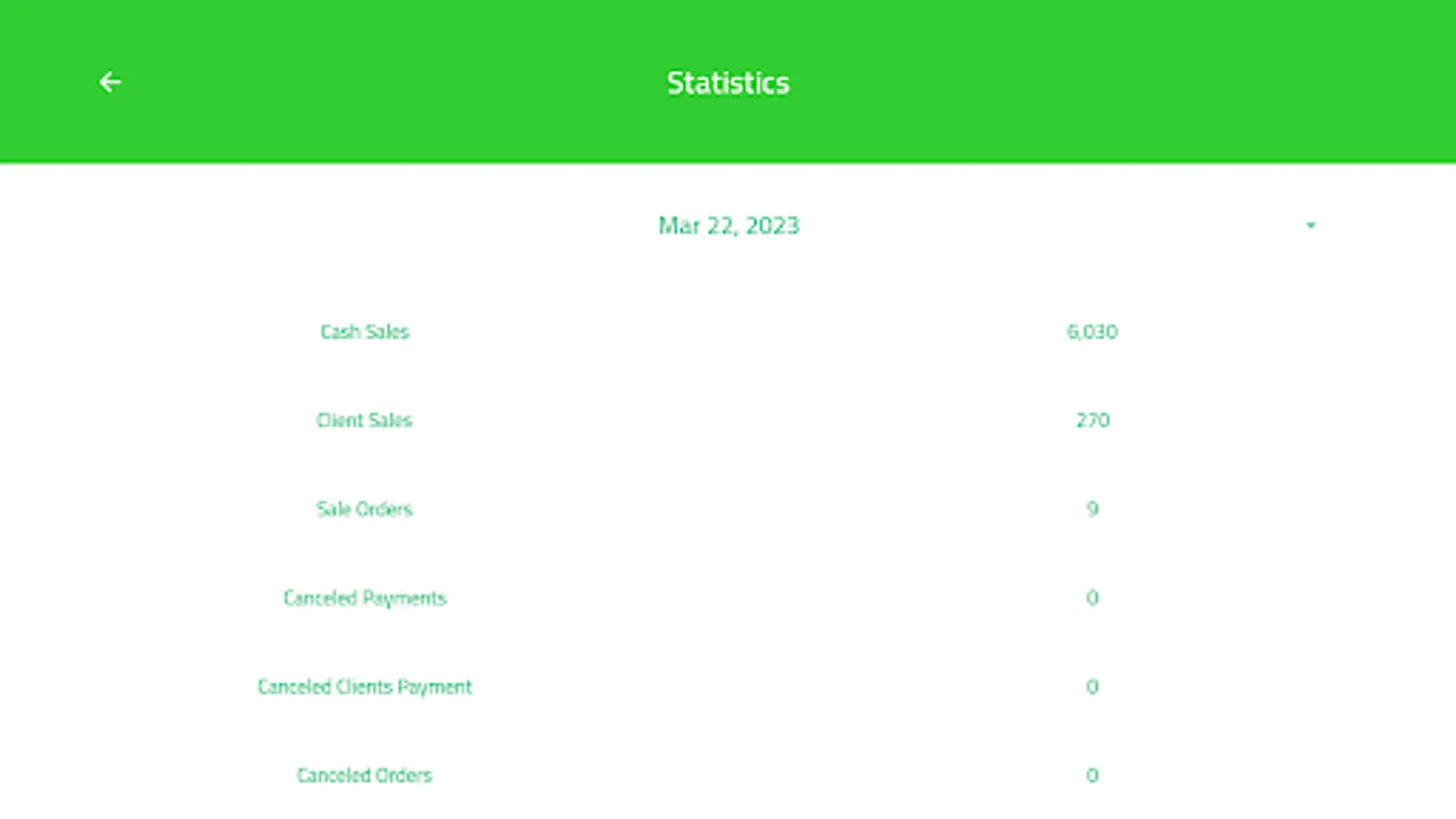 Statistics about sales orders and canceled orders