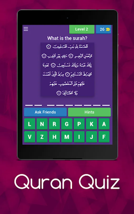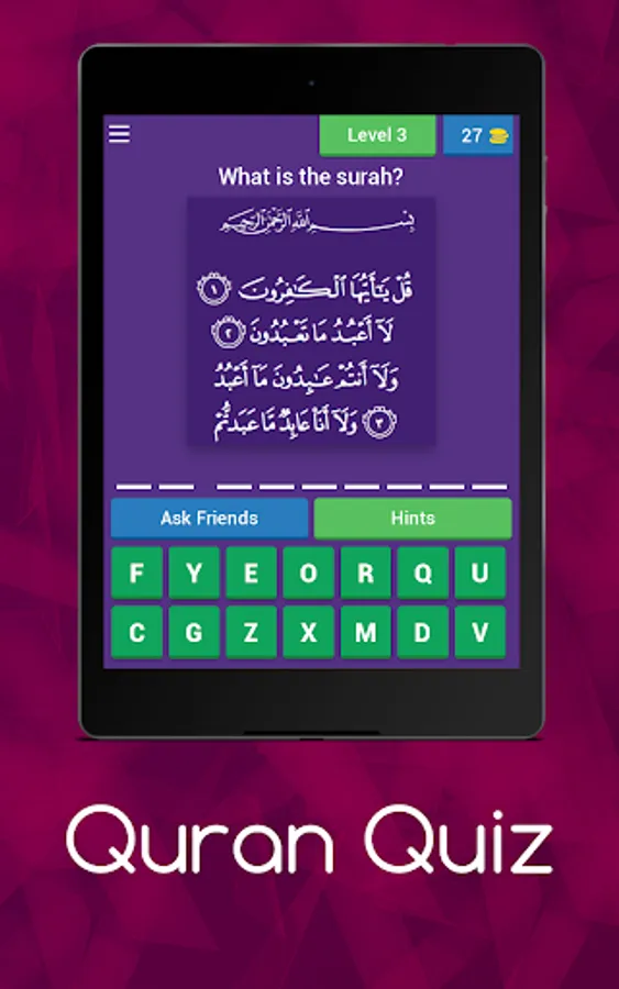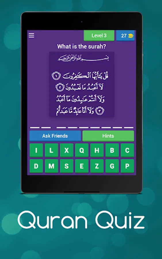 - Verses provided on all phases for your hint on guessing the Surah of Quran.