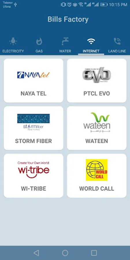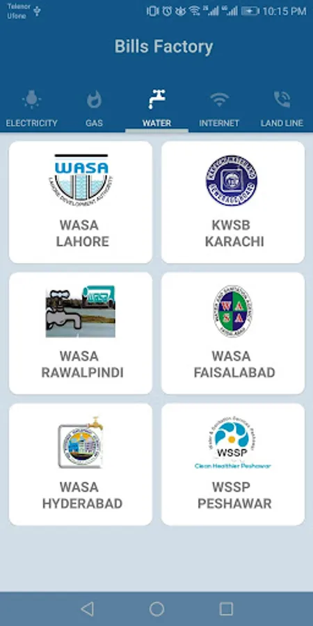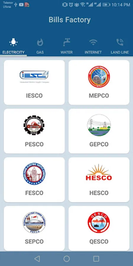 Bills Factory (Pakistan) is an app to view all types of utility bills. It has the provision to view WAPDA bills i.e. IESCO, FESCO, GEPCO, MEPCO, PESCO, HESCO, QESCO, TESCO, SEPCO, LESCO and K-ELECTRIC. It facilitate consumers to view their gas bill i.e. SNGPL and SSGC. This app also incorporated water bills including WASA Lahore, WASA Rawalpindi, WASA Faisalabad, WASA Hyderabad, WSSP Peshawar.