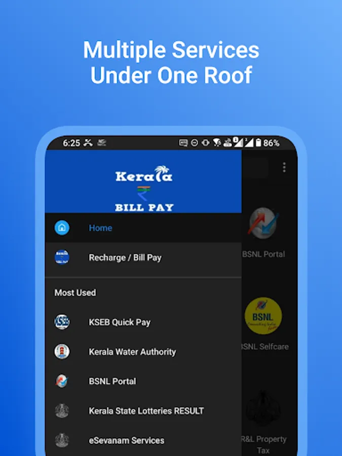 Disclaimer: We are not affiliated with Kerala Government or Any of the Bill Payment Companies. Our app works as a browser for you to access Bill Payment websites. All product names, logos, trademarks and registered trademarks are property of their respective owners. All company, product and service names used in this website are for identification purposes only. Use of these names,trademarks and brands does not imply endorsement.