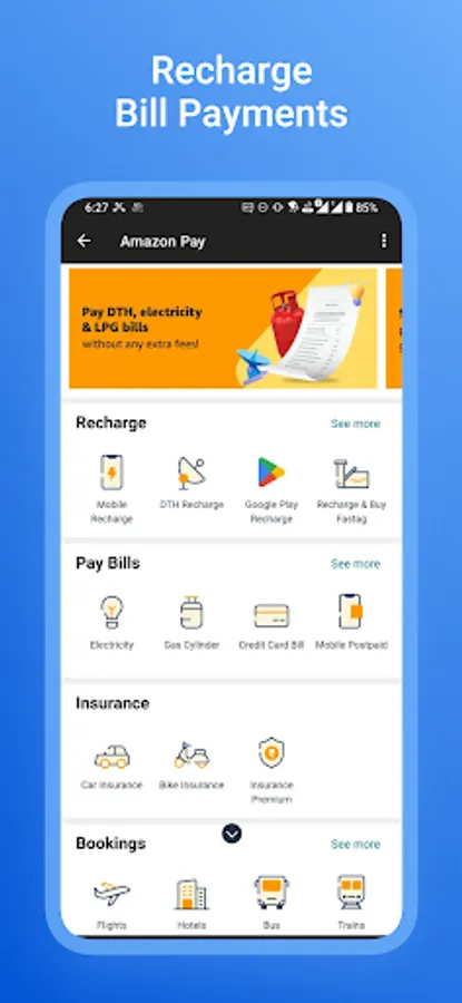 * Mobile Bills/Recharge/DTH/Data Card/Gas/Metros/Hotels/Bus Tickets/Movies/Flight/Train/Amusement Parks