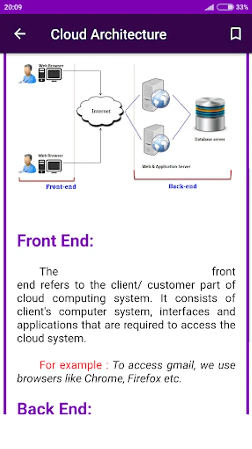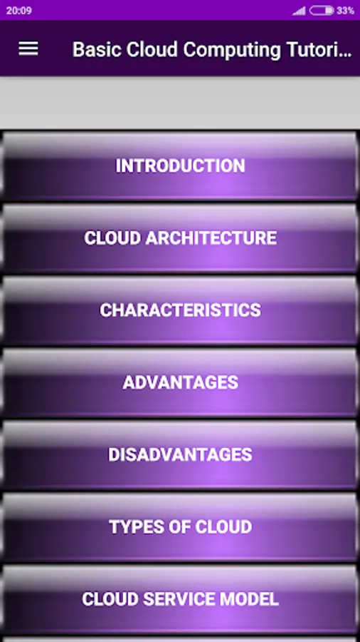 Cloud computing is an emerging technology used by organizations in many different ways in order to help them to save money. Every one of us who are using computers must be aware of this technology. Cloud services are much less expensive than other services. This app uses simple language to allow users to understand the basic concepts of cloud computing.