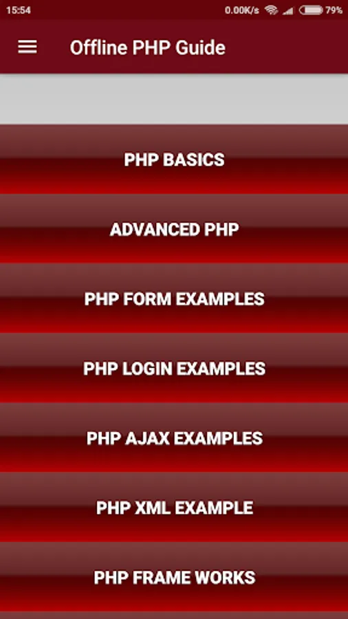 This Offline PHP Guide android application is full and free learning for PHP without Internet.