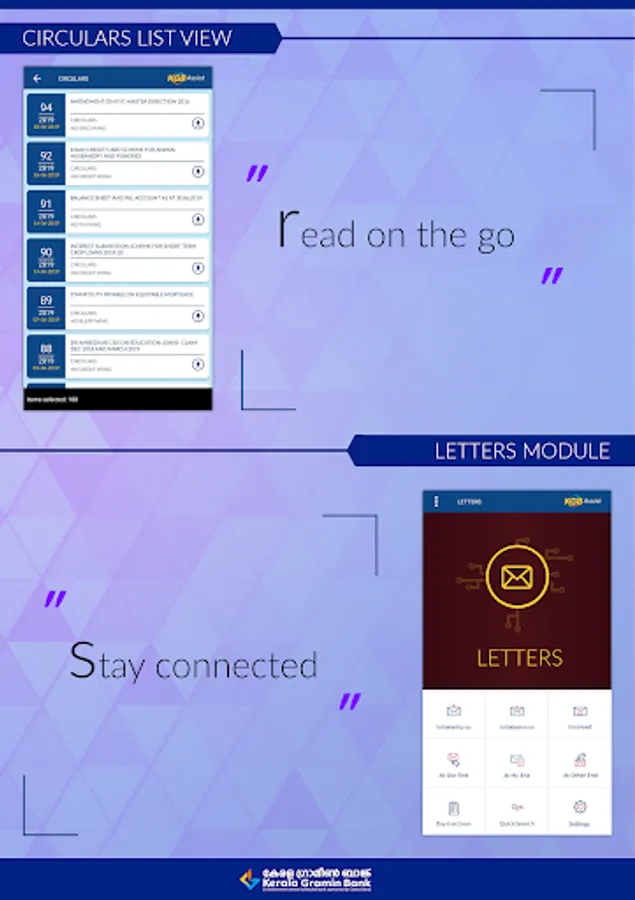 KGB Assist is a digital assistant exclusively for the staff members of Kerala Gramin bank. It is a light weight, robust and informative app developed in-house by the bankers for the bankers. The app brings in all major facets of banking under one umbrella, enabling easy access for the users. Kerala Gramin bank is the first Regional Rural Bank in the country to launch such an app.