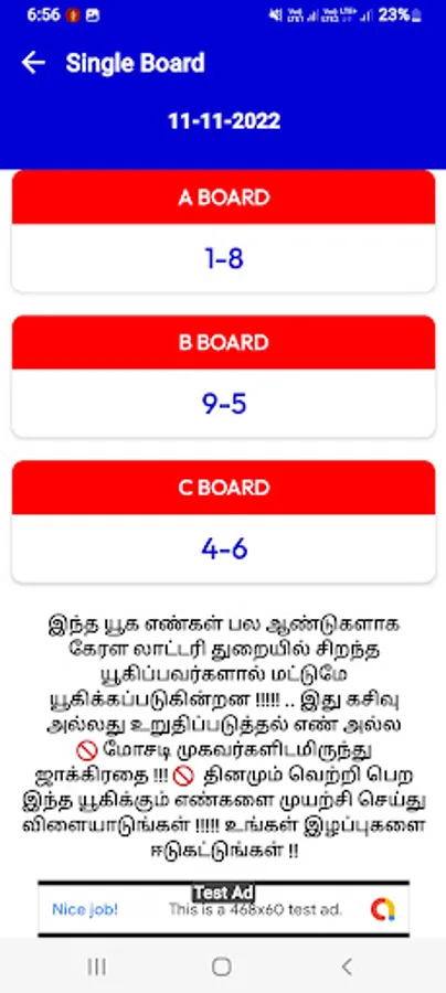 Kerala Lottery is very famous in Kerala. The objective is to change everyone's lifestyle by luck. We are giving A Board, B Board, C Board, ABC Board Numbers. Also you can get AB,BC,AC Numbers and ALL Board Numbers. All the best!!!