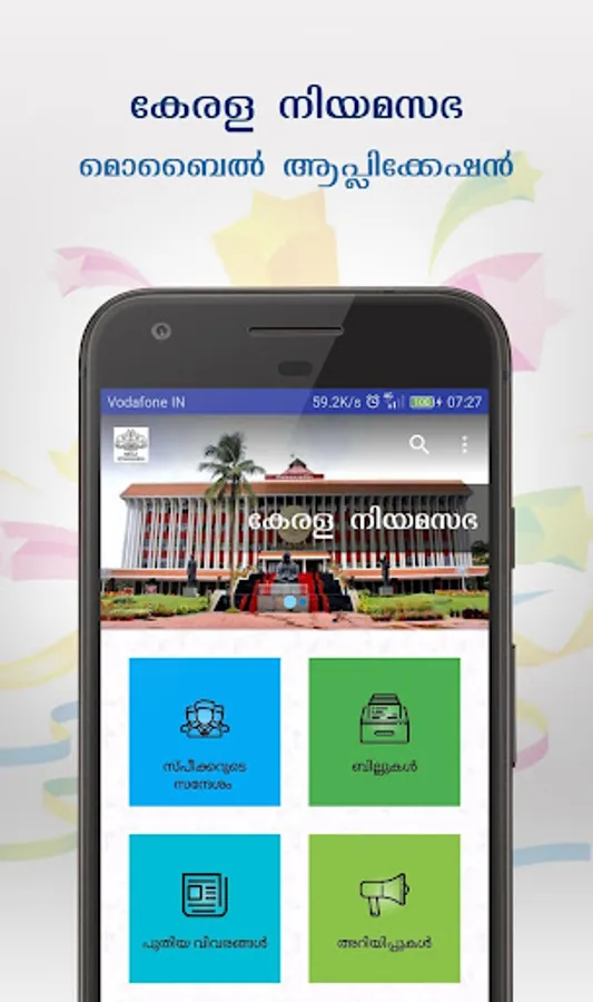 A private mobile application that is accessible only for the Members of Kerala Legislative Assembly. App is primarily meant as an effective communication system between the Legislative Assembly and its members. Members will be updated with all necessary information regarding the activities of Assembly through the App. This Mobile Application is a first step initiative towards a paper less Niyamasabha.