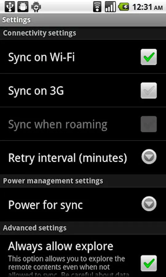 This unique app allows you to sync a set of folders from your Android device to the cloud and back. It currently supports the Dropbox storage service, as well as your own FTP, SFTP, FTPS servers. The official Dropbox app is *not* needed.