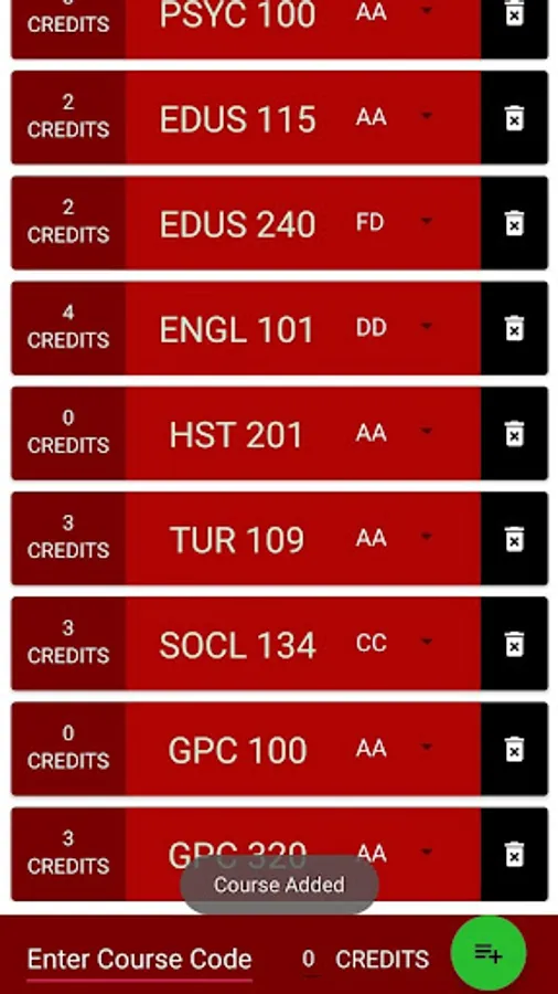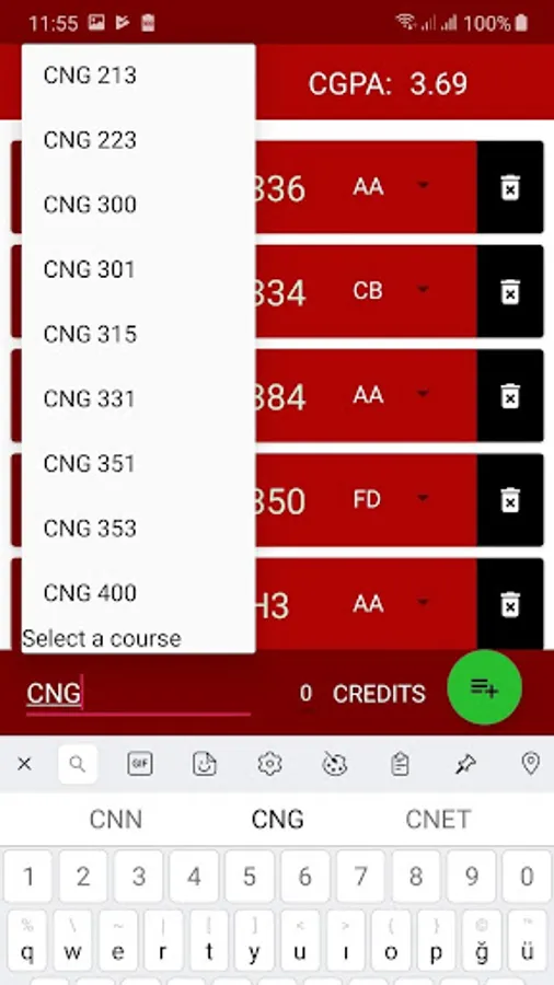 More than 650 courses with their codes and credits are within the app, including the courses in Ankara. Just enter the course code while adding courses, its credits will be automatically adjusted.