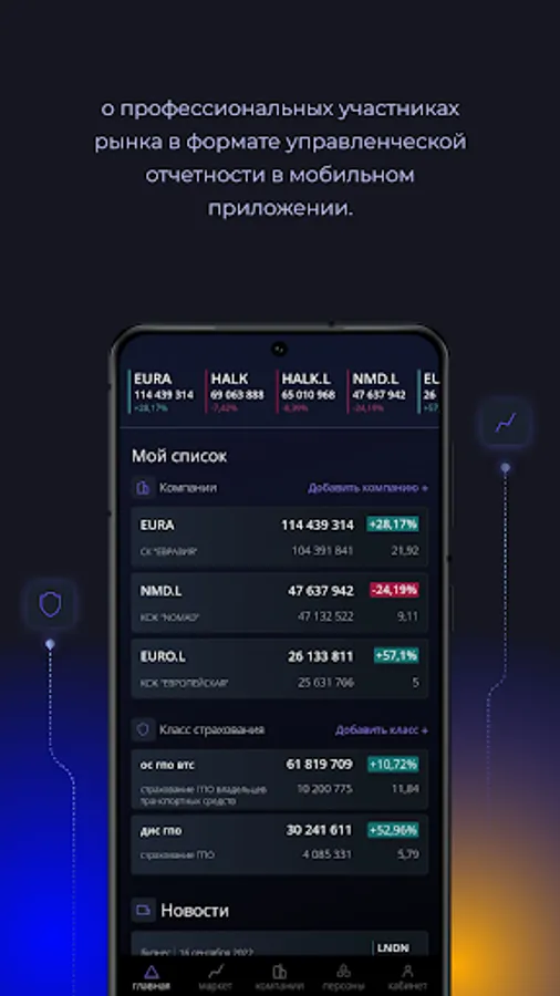 In the application, you have access to reliable information about the status of insurers, brokers and major insurers. You will get access to the author's analytics and will always be aware of corporate events.