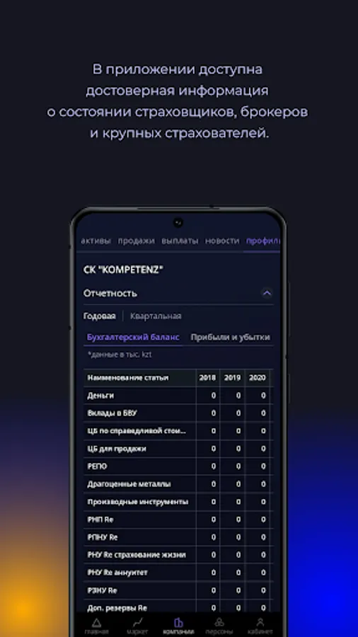 Convenient presentation of corporate, financial and statistical data on professional market participants in the format of management reporting in a mobile application