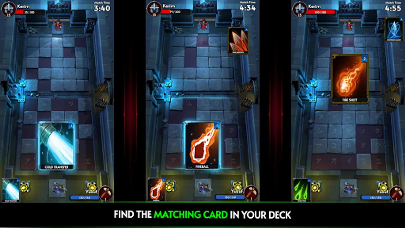 - MATCH CARDS: Find the matching cards in your deck to attack the opponent.
