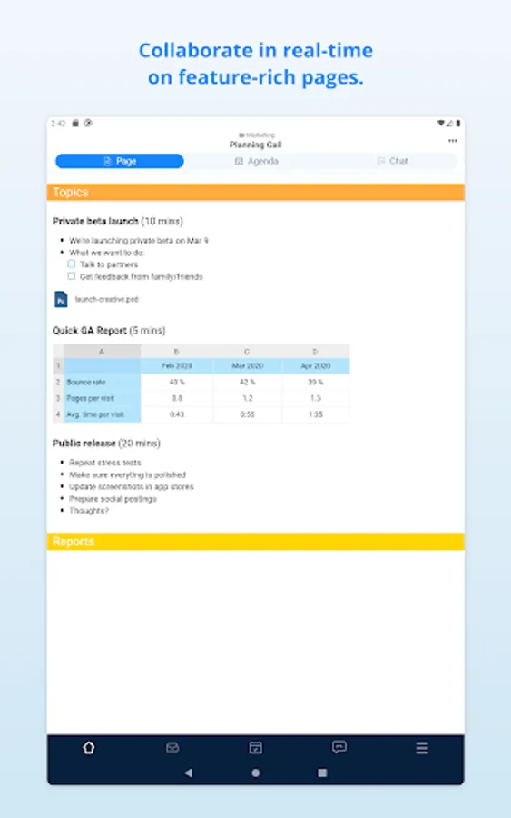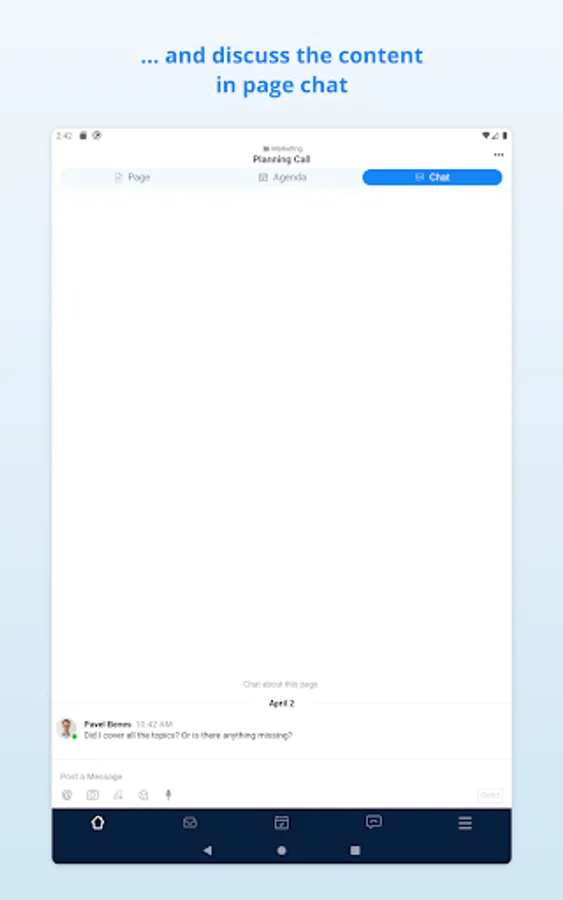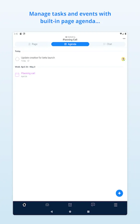 · Do minimalistic project management with built-in page agenda to keep tasks and events related to particular content.