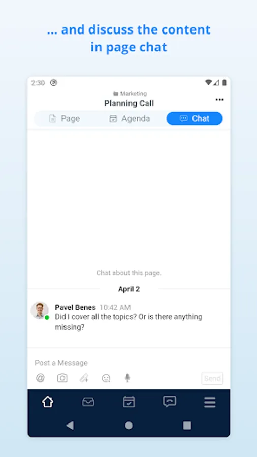· Discuss in context. Each page has it's own chat, and so you'll never lose a context for your conversation.