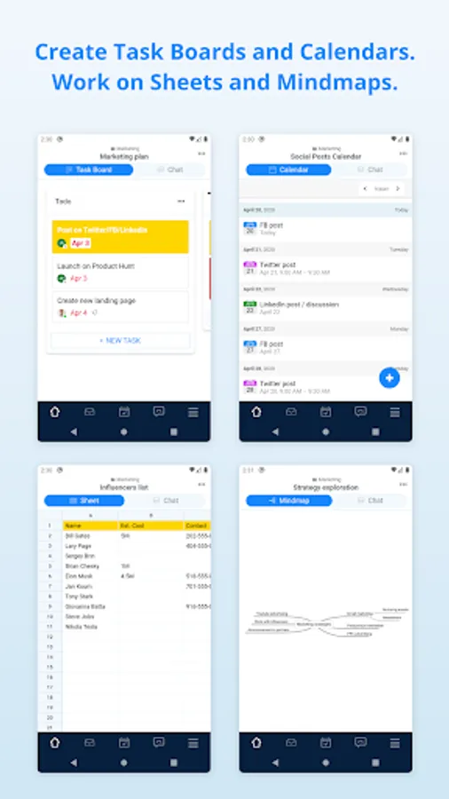 · Work with your team on various types of content. Pages, Task boards, Sheets, Calendars, and more.
