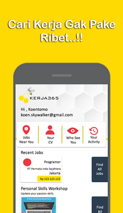 log in, dan dapatkan pekerjaanmu, temukan calon pekerjamu, kembangkan skillsmu, dan