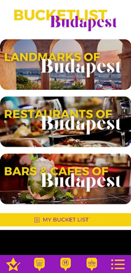 Introducing Bucketlist Budapest, your ultimate Android app to uncover the best of what Budapest has to offer! Whether you're a local looking for new experiences or a traveler eager to explore this captivating city, our app is your ticket to discovering the finest bars, cafés, restaurants, landmarks, and must-see places in Budapest.