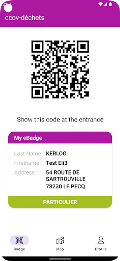 ccov-déchets, dematerialized badge of the Community of Communes of the West Vosgien allowing access to the recycling centers of the community.