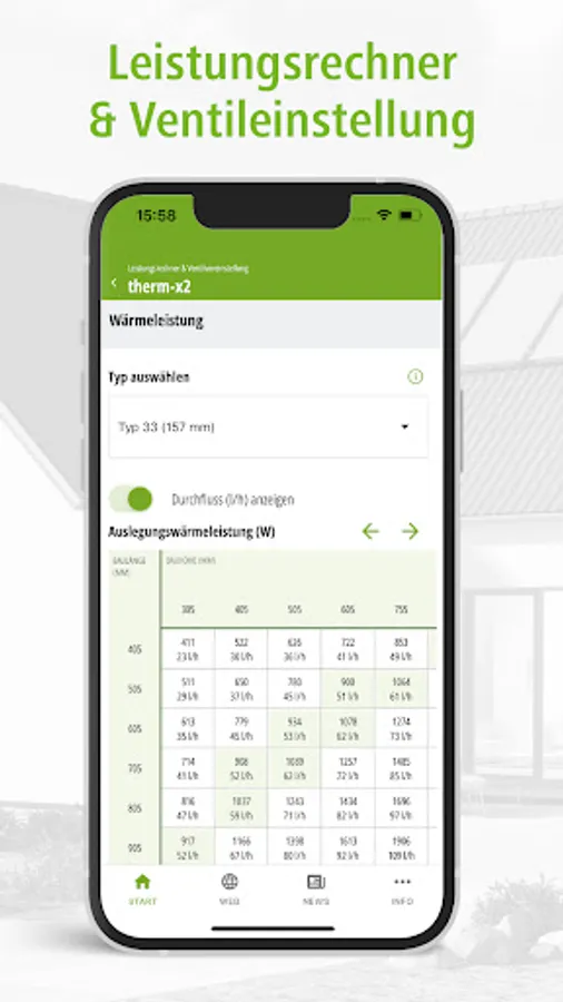 Comprehensive calculation of the heat output of your Kermi radiator based on various temperature and output parameters - including flow rate display.