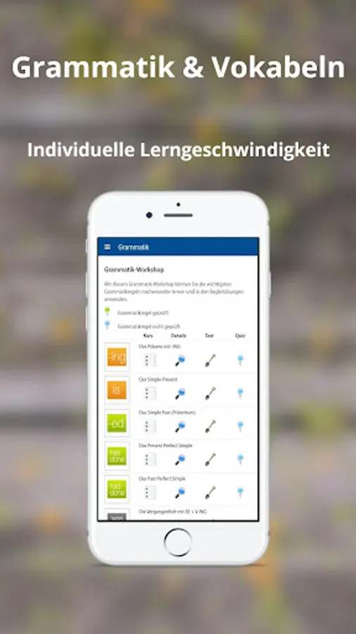 Create your personal profile that corresponds to your current language level and solve suitable exercises - anytime and anywhere.