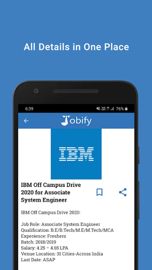 JOBIFY App provides end-to-end information about job openings, vaccancy, qualifications, pay scale*.